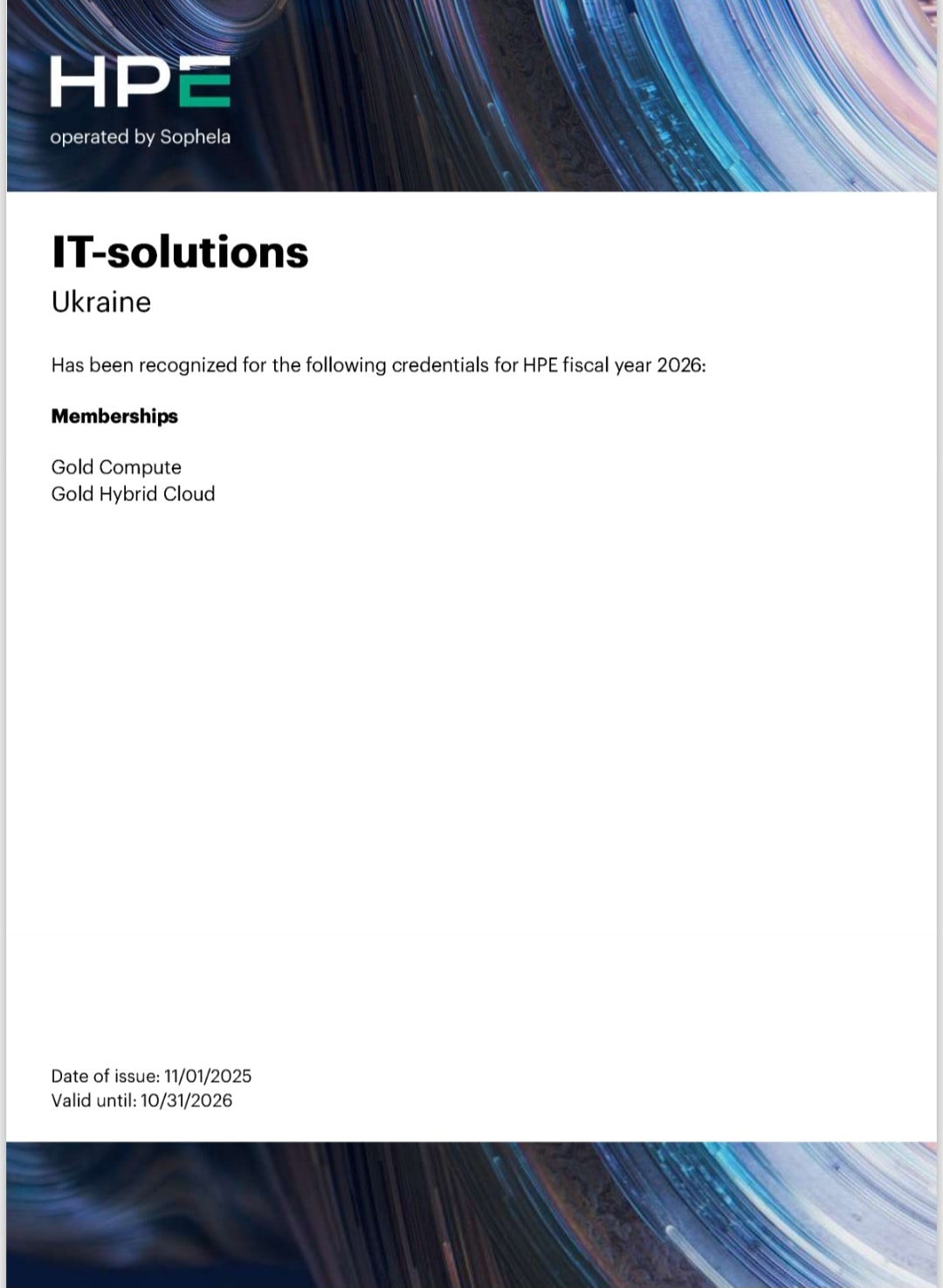 Компанія Hewlett Packard Enterprise operated by Sophela офіційно визнала IT-Solutions золотим партнером FY26 одразу у двох ключових напрямах: